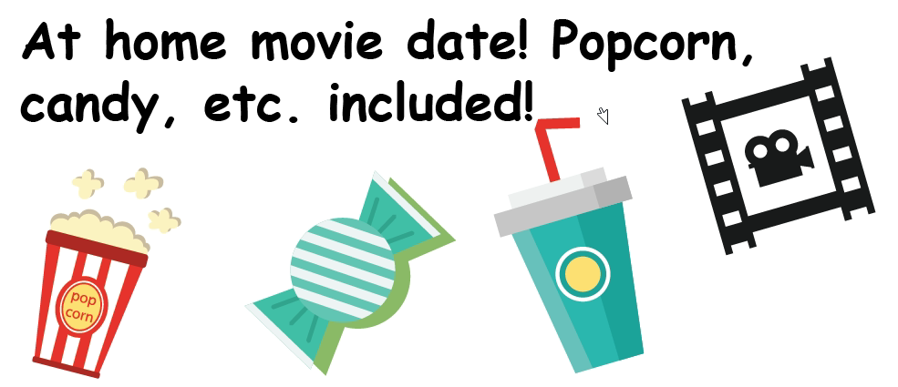 3. At home movie date, popcorn, candy, etc. included.